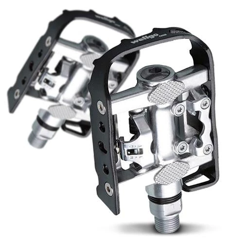 - Wellgo 98A cleats included. Clip-on on both sides. Weight 382 g/pr.