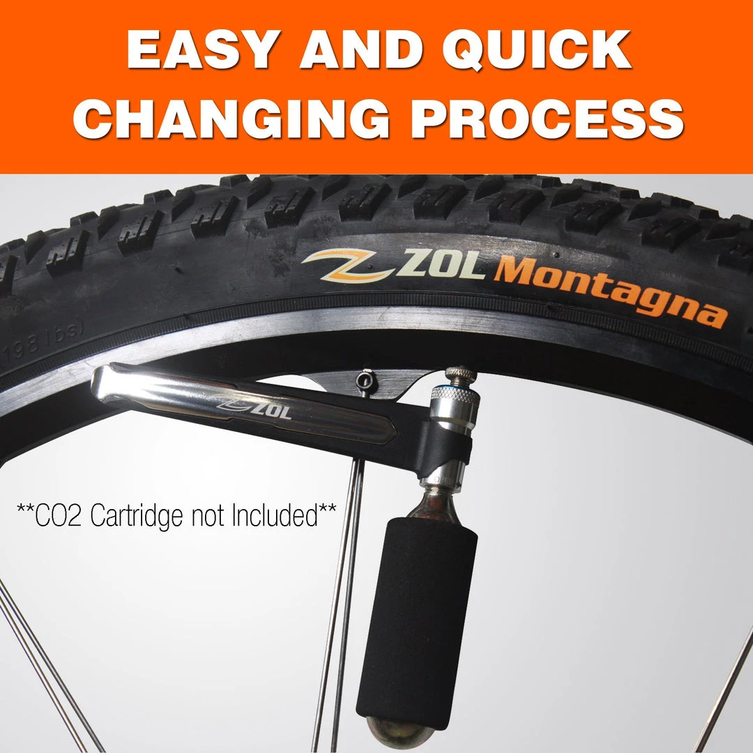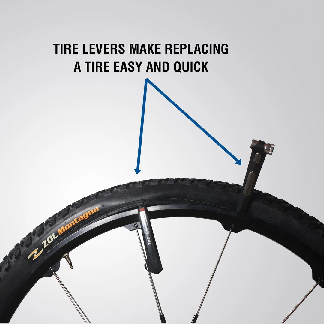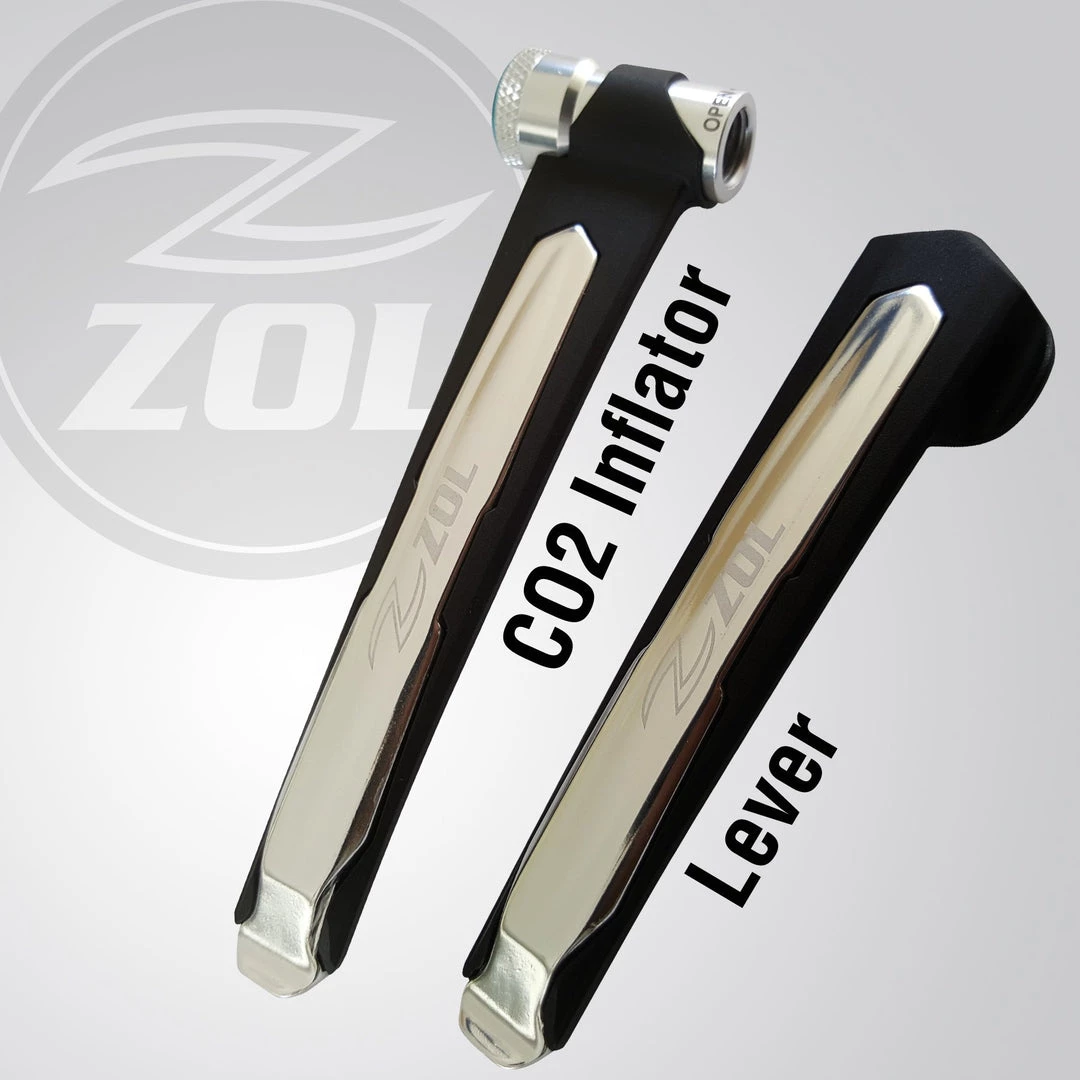 The Zol bicycle tire lever is a cyclists essential item. Our Zol 2 in 1 aluminum bicycle tire lever has a CO2 valve tire inflator lever and tire lever clip. This bicycle tire lever has a durable aluminum construction to prevent breakage. The design allows a flat tire change to be done easily and without damaging the rim. One year warranty directly with manufacturer.