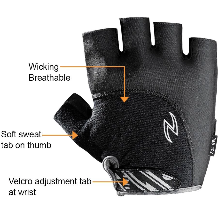 - The Zol Sprinter cycling gloves have two accessible pull tabs system that make the removal of the glove easy. The modern wicking fabric draws moisture away from the body, the thumb is equipped with a small towel like material for removing excess sweat as needed and the new gel technology padding incorporated delivers a mixture of comfort and protection with an exceptional fit and quality.