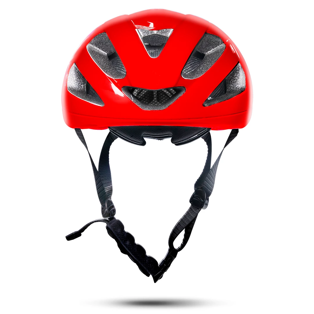 The Zol Sprinter Aero Helmet. A 283.50grams lightweight helmet built with moveable inner padding easy for washing, adjustable clip-on strap, and head adjuster. It counts with 15 ventilation holes which will prevent you from overheating, but you won’t lose the aero efficiency and the great look on the helmet. The Sprinter Helmet counts with a High-Strength PC Shell
